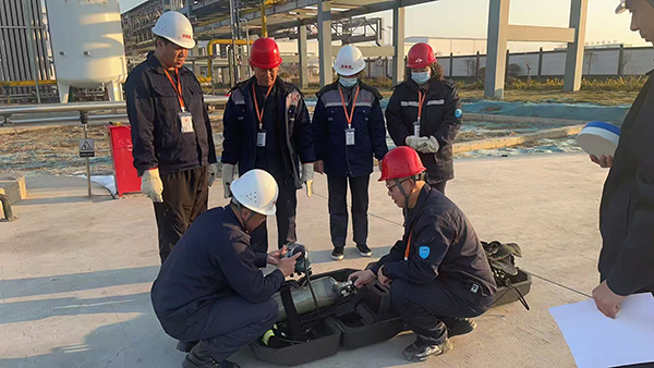 一、燃?xì)庑孤?yīng)急演練:快速響應(yīng)保安全 演練總指揮首先向參演人員詳細(xì)講解了燃?xì)庑孤?yīng)急預(yù)案內(nèi)容,重點(diǎn)強(qiáng)調(diào)了現(xiàn)場處置要點(diǎn)和注意事項(xiàng)。鍋爐車間燃?xì)庑孤?yīng)急演練正式啟動。演練模擬車間內(nèi)發(fā)生燃?xì)庑孤┦鹿?,現(xiàn)場立即啟動應(yīng)急預(yù)案。“正壓式空氣呼吸器是進(jìn)入泄漏現(xiàn)場的關(guān)鍵防護(hù)裝備,必須正確穿戴。”安全員現(xiàn)場演示了空氣呼吸器的使用方法,從檢查氣瓶壓力、佩戴面罩、調(diào)節(jié)頭帶到測試氣密性,每一個步驟都進(jìn)行了詳細(xì)講解。搶修人員按照規(guī)范要求,快速穿戴好空氣呼吸器,攜帶檢測儀器與防爆工具進(jìn)入現(xiàn)場,迅速定位泄漏點(diǎn)并進(jìn)行應(yīng)急處置。